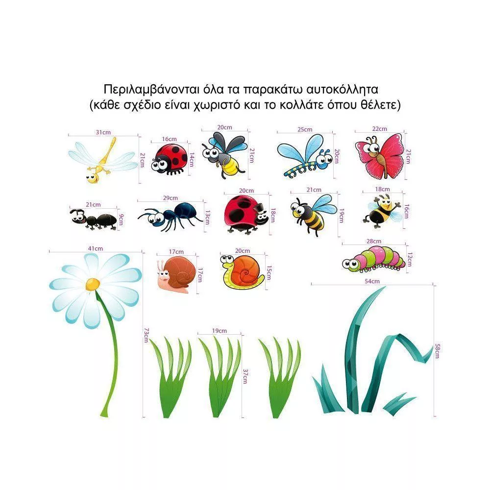 Αυτοκόλλητο τοίχου Πεταλούδα, πασχαλίτσα, μελισσούλα, μυρμηγκάκι, Bugs, μεγάλη συλλογή