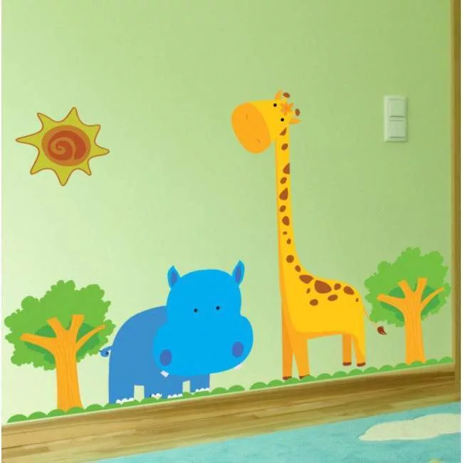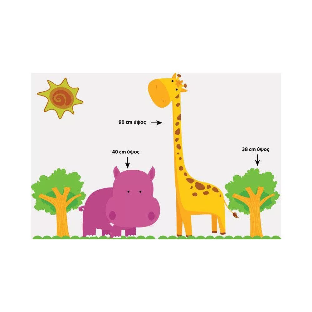 Αυτοκόλλητα τοίχου παιδικά Ιπποπόταμος και καμηλοπάρδαλη, Happy Hippo blue & Giraffe,...