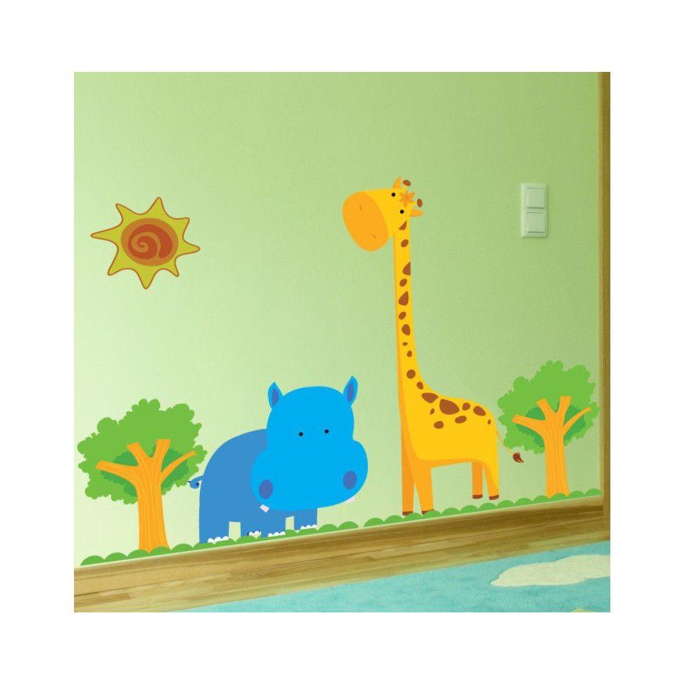 Αυτοκόλλητα τοίχου παιδικά Ιπποπόταμος, καμηλοπάρδαλη, Happy Blue Hippo & Giraffe