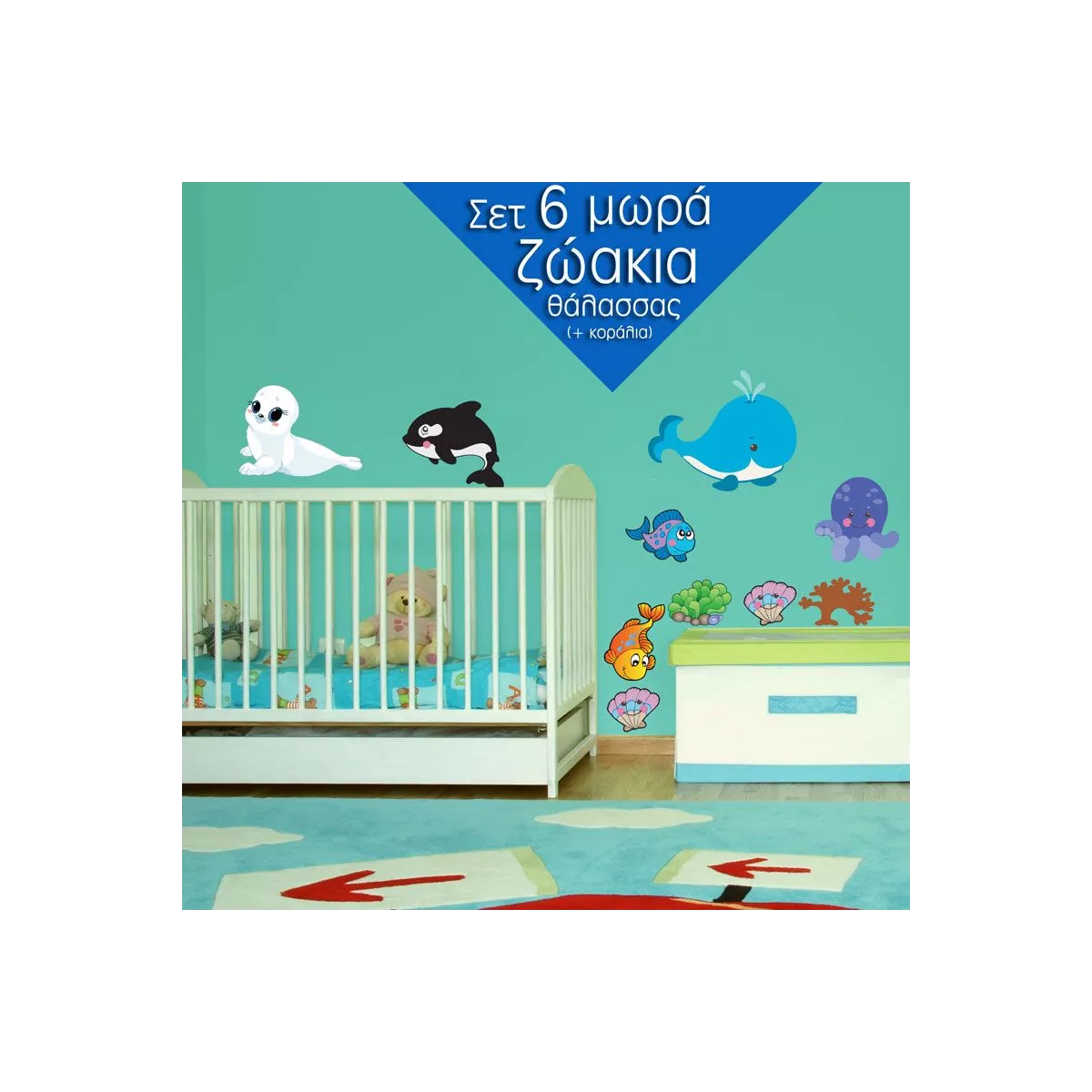 Αυτοκόλλητα τοίχου παιδικά Φάλαινα, πιγκουίνοι, φώκια, δελφίνια, Ζωάκια της θάλασσας