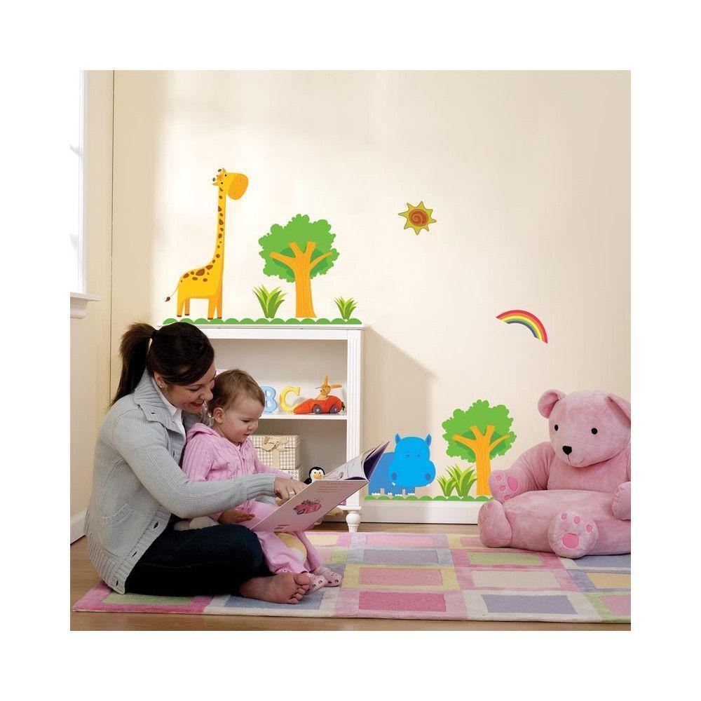 Αυτοκόλλητα τοίχου παιδικά ιπποπόταμος και καμηλοπάρδαλη, Happy Hippo & Giraffe, μικρή...