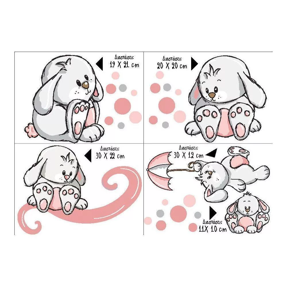 Αυτοκόλλητα τοίχου παιδικά Κουνελάκια παντού ροζ