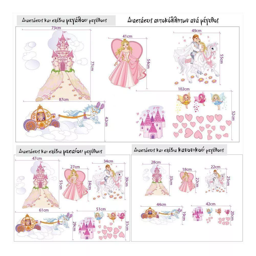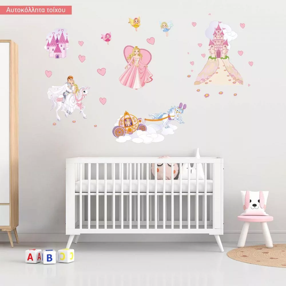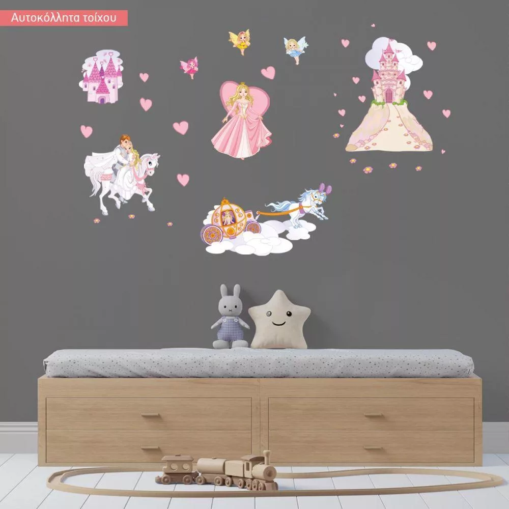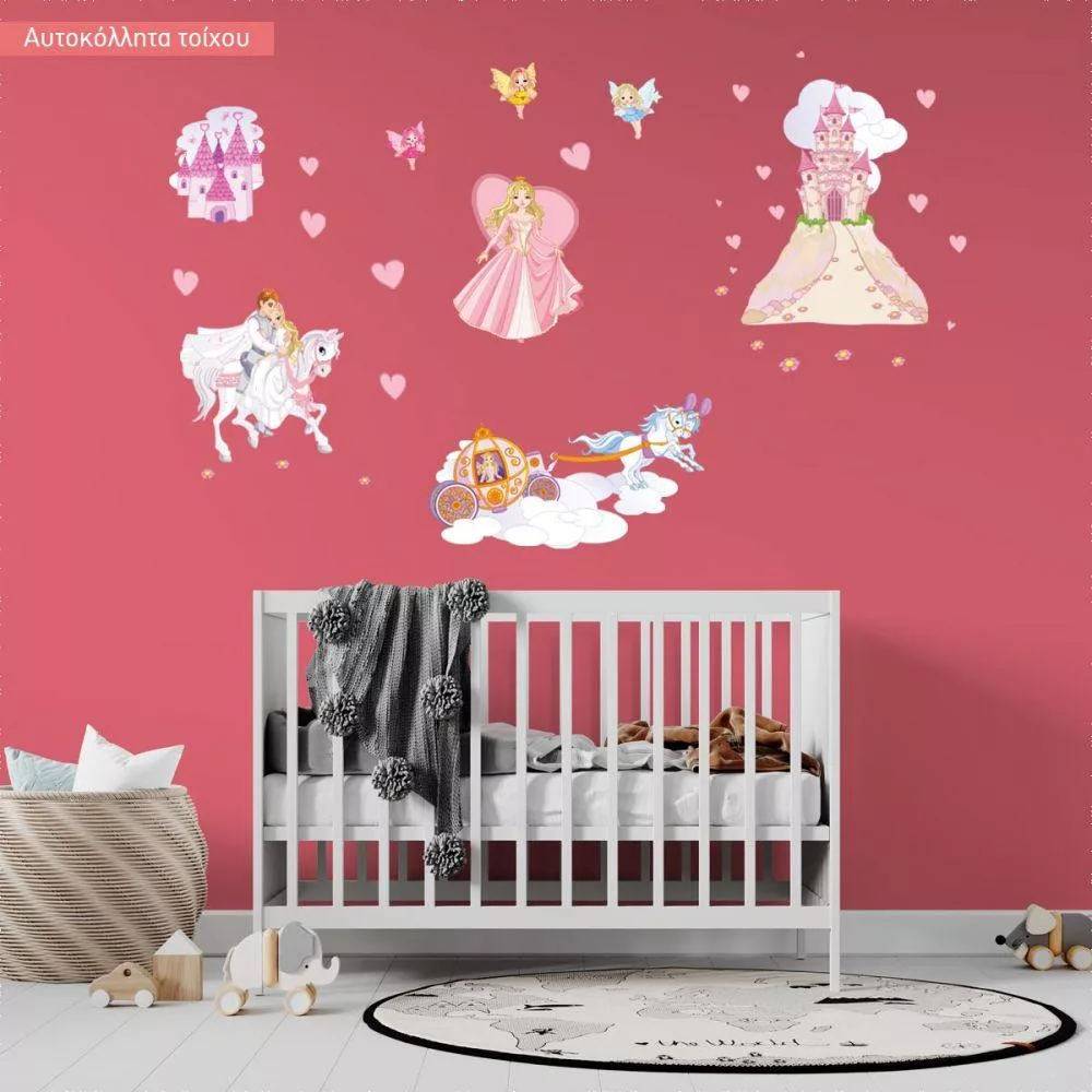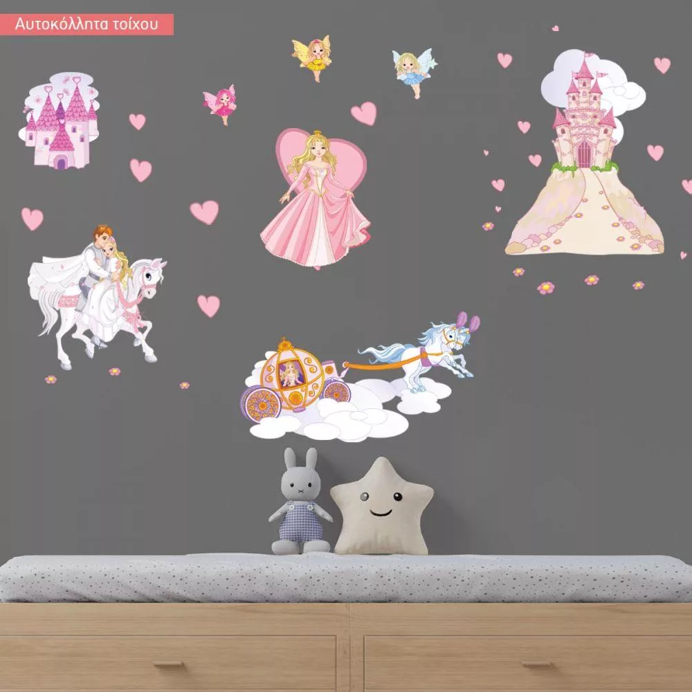 Αυτοκόλλητα τοίχου παιδικά πριγκίπισσα, νεράιδες, κάστρο, πρίγκιπας, Πριγκίπισσα και η μαγική περιπέτεια