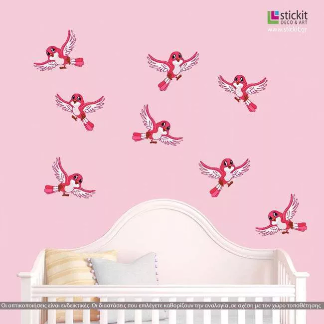 Αυτοκόλλητα τοίχου παιδικά Πουλάκια χαριτωμένα σε πολλά χρώματα