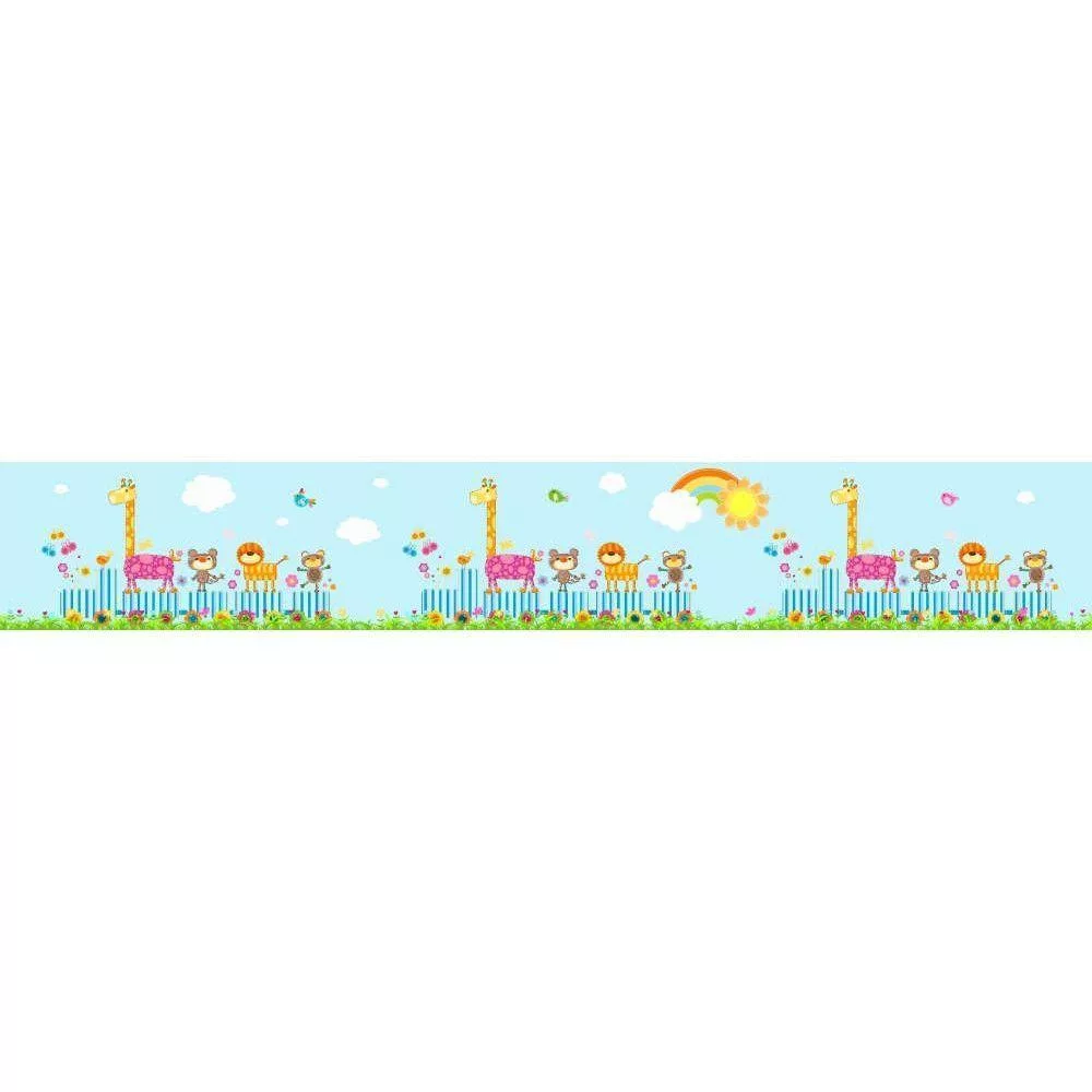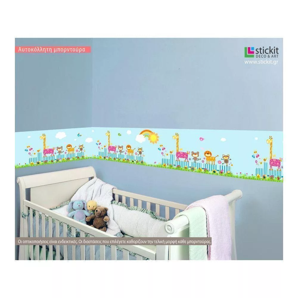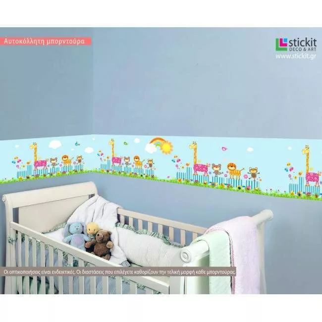 Μπορντούρα αυτοκόλλητο τοίχου, τρενάκι και ζωάκια, Cute Happy animals