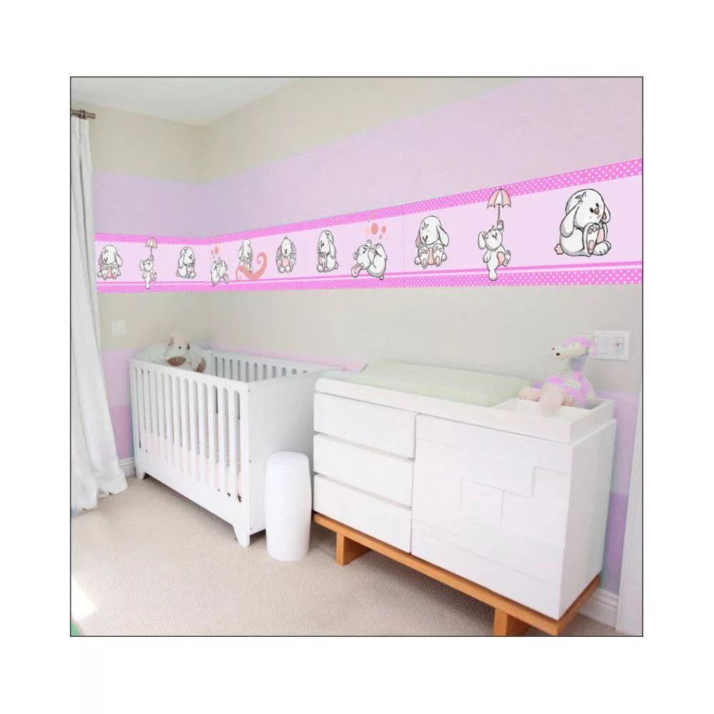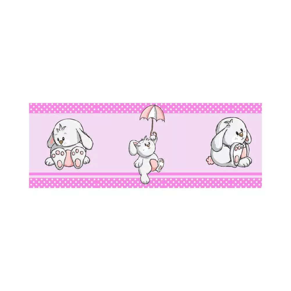 Μπορντούρα αυτοκόλλητο τοίχου, Κουνελάκια παντού ροζ