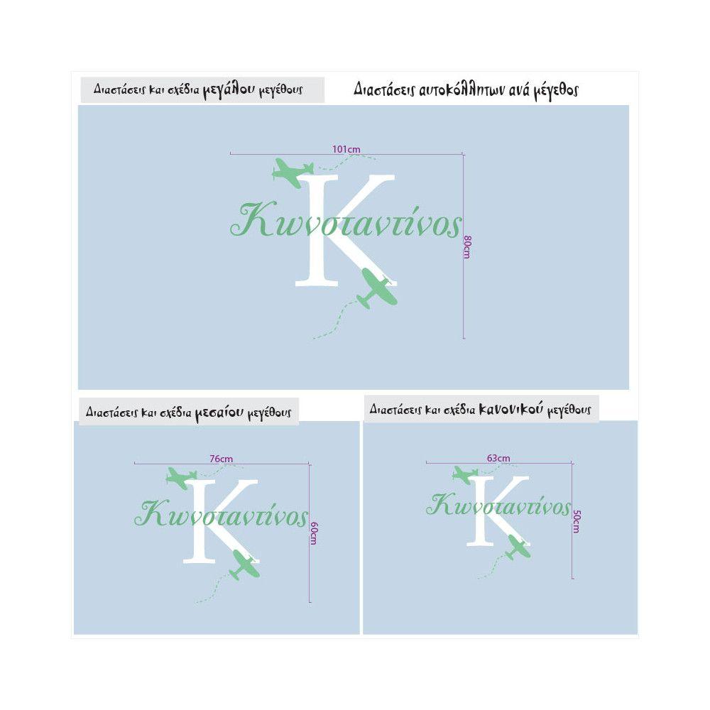Αυτοκόλλητο τοίχου Μονόγραμμα, όνομα και αεροπλάνα