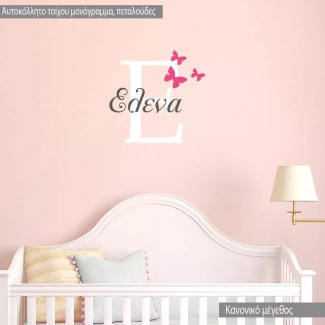 Αυτοκόλλητο τοίχου Μονόγραμμα, όνομα, και πεταλούδες