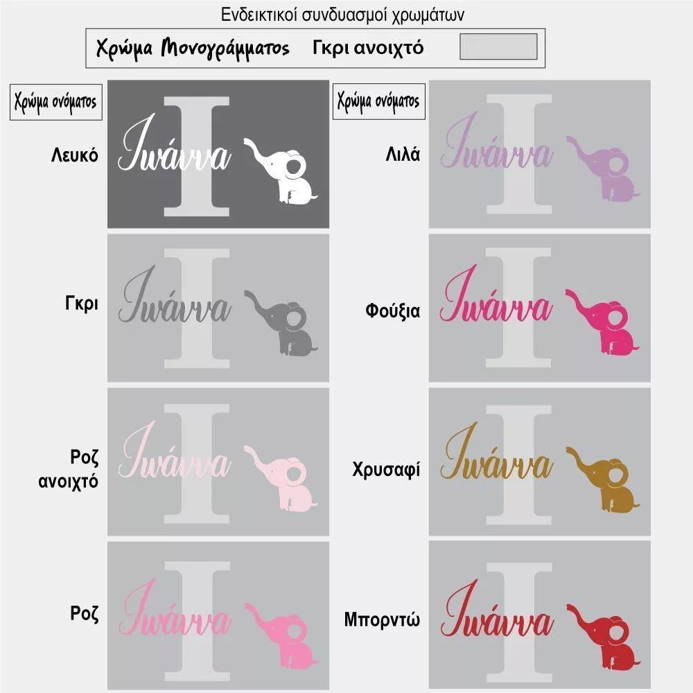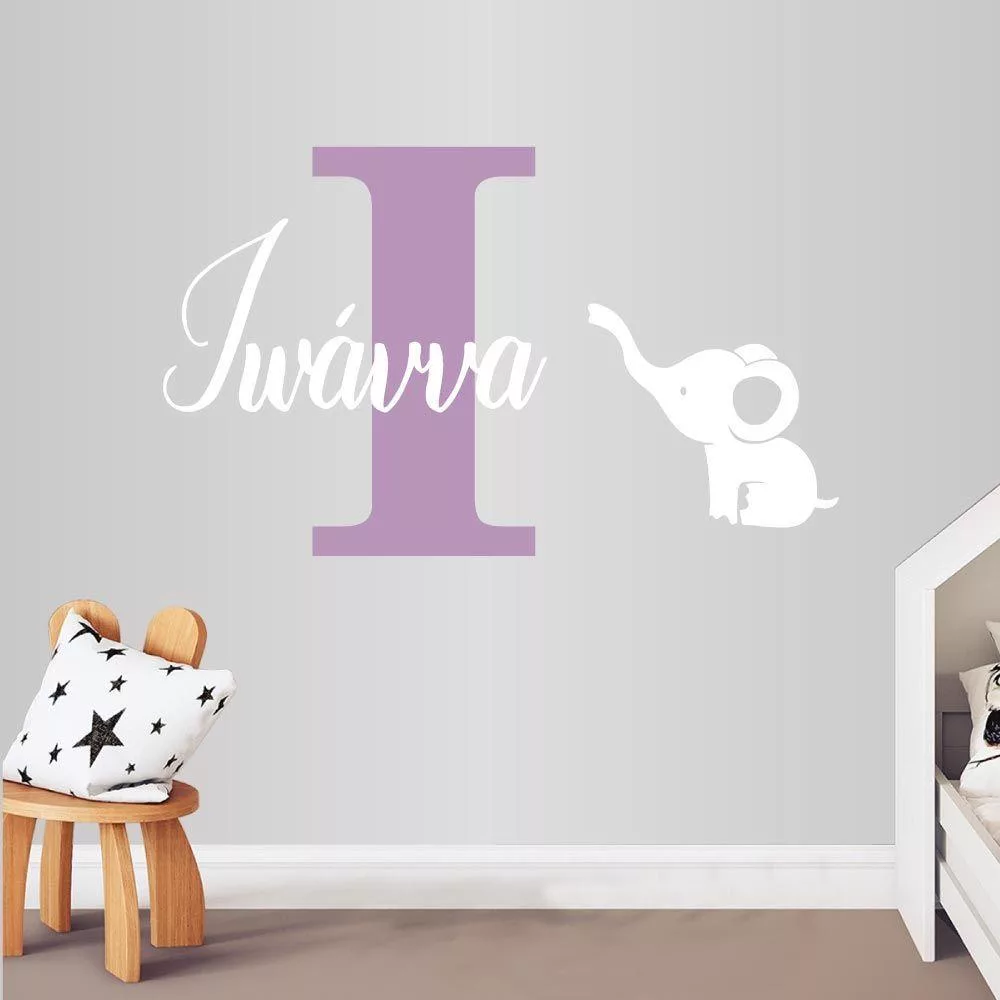 Αυτοκόλλητο τοίχου Μονόγραμμα, όνομα, Ελεφαντάκι girl colors