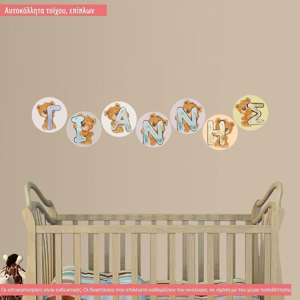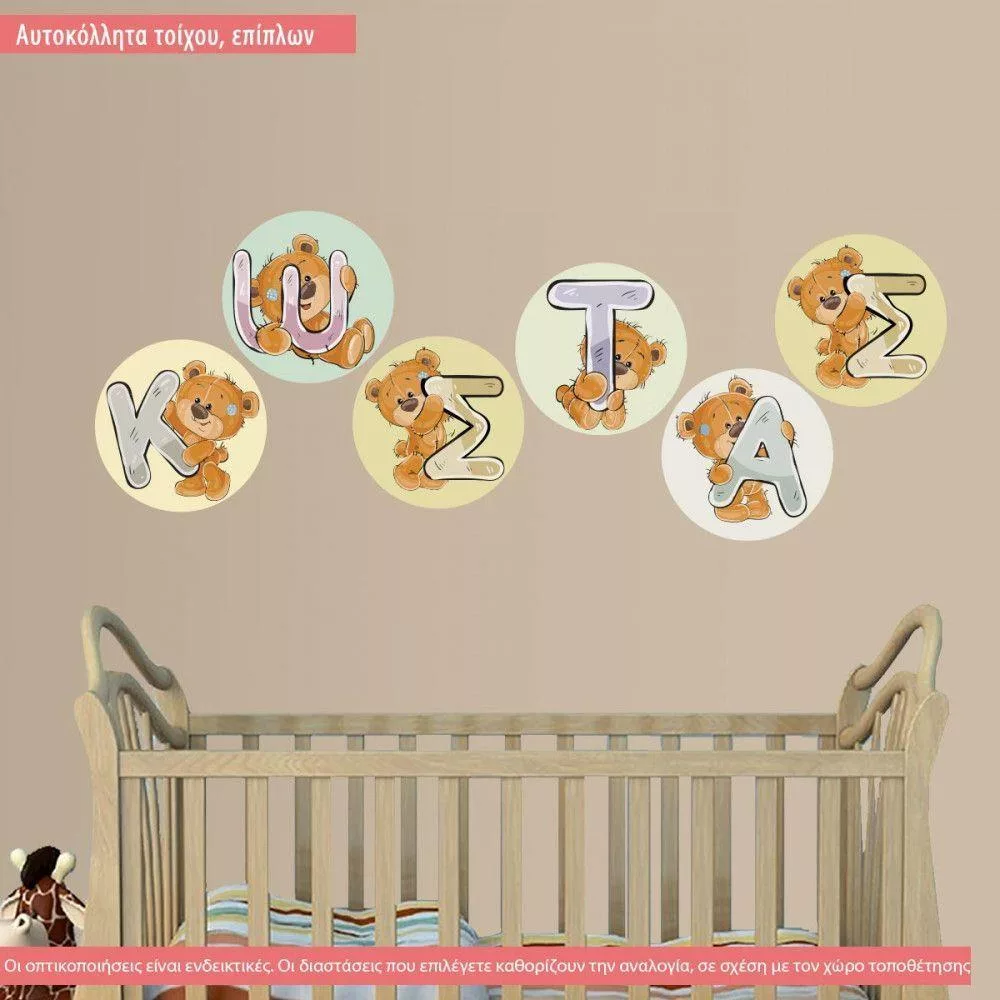 Αυτοκόλλητο τοίχου Όνομα, με γράμματα που τα κρατάνε αρκουδάκια