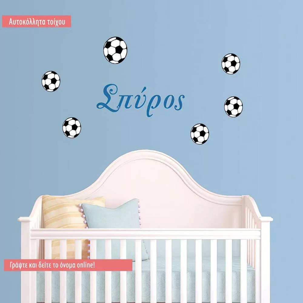 Αυτοκόλλητο τοίχου Όνομα και μπάλες ποδοσφαίρου