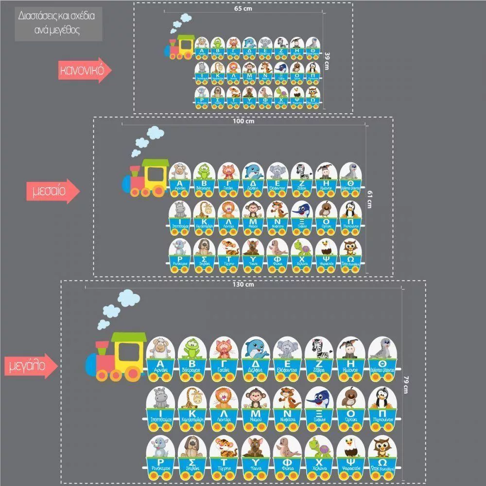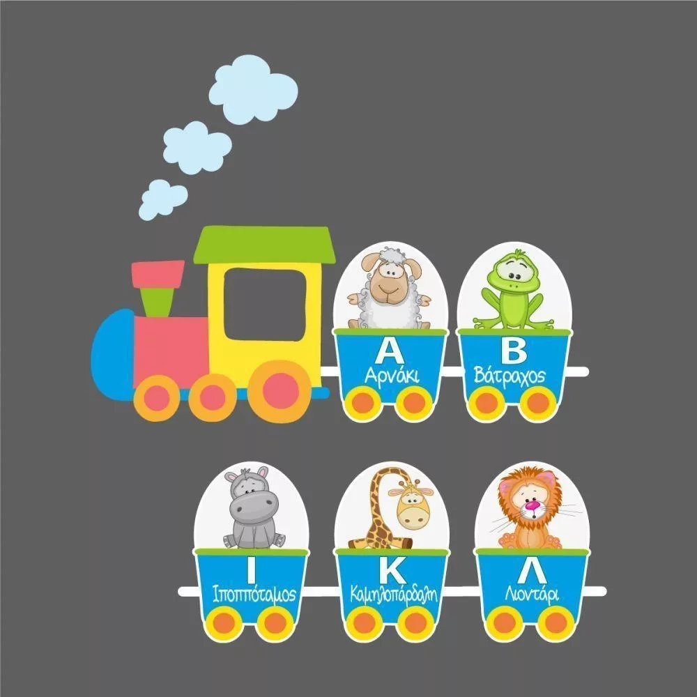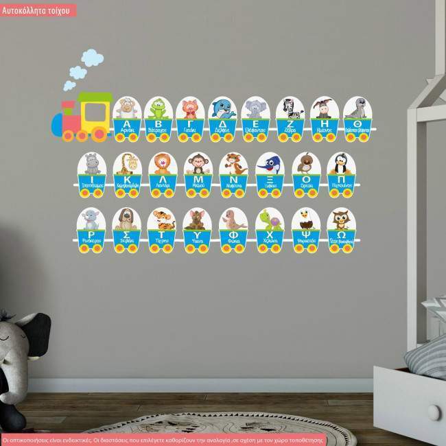 Αυτοκόλλητο τοίχου Τρενάκι αλφάβητο και ζωάκια blue