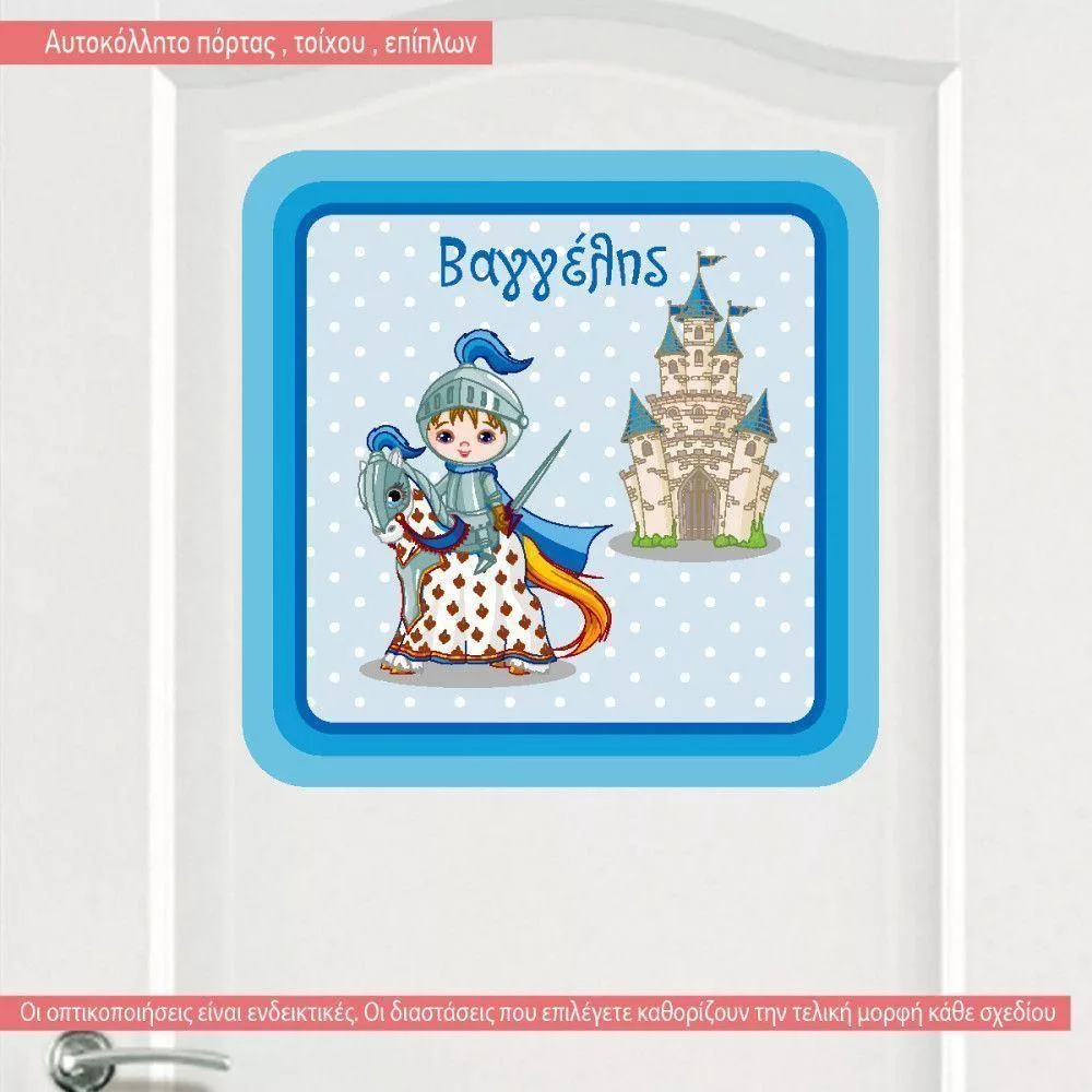 Αυτοκόλλητη πινακίδα, Ιππότης στο άλογο και κάστρο, προσωποποιημένη
