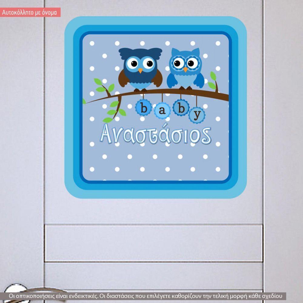 Αυτοκόλλητο τοίχου My baby owls, πινακίδα με όνομα και ζωάκια