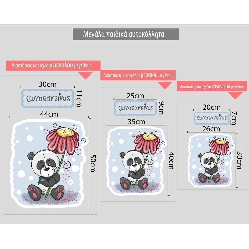 Αυτοκόλλητο τοίχου Χαριτωμένο Panda, πινακίδα με όνομα και λουλούδι