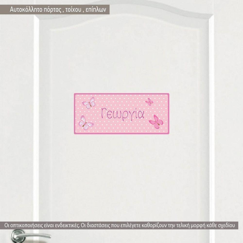 Αυτοκόλλητο τοίχου Πεταλούδες και πουά, πινακίδα με όνομα