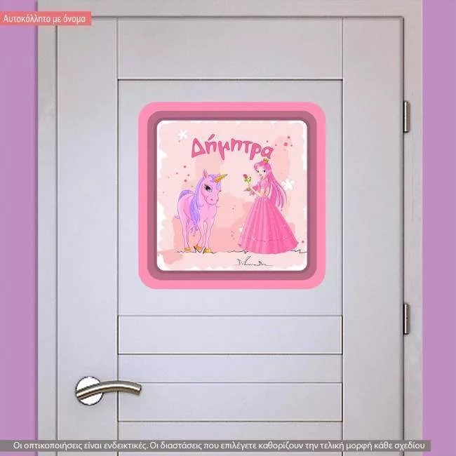 Αυτοκόλλητο τοίχου Πριγκίπισσα και μονόκερος, πινακίδα με όνομα