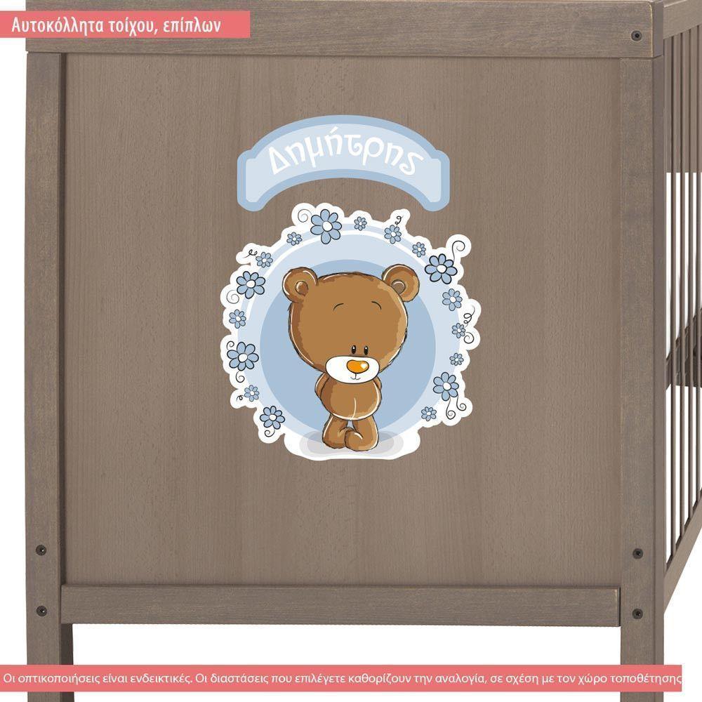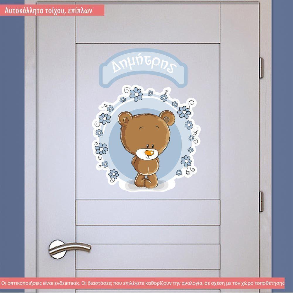 Αυτοκόλλητο τοίχου Χαριτωμένο Αρκουδάκι, πινακίδα με όνομα