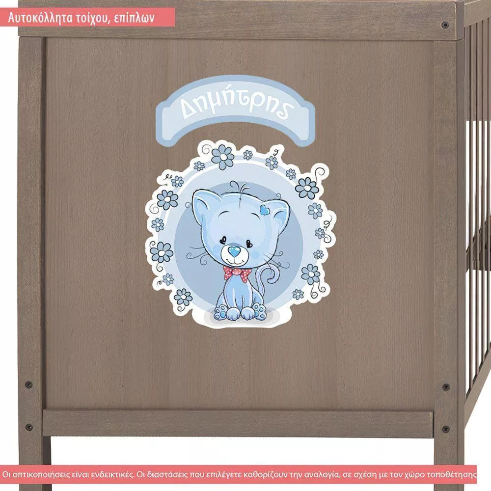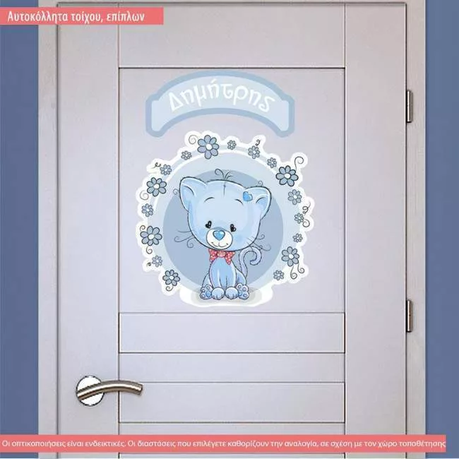 Αυτοκόλλητο τοίχου Χαριτωμένο Γατάκι, πινακίδα με όνομα