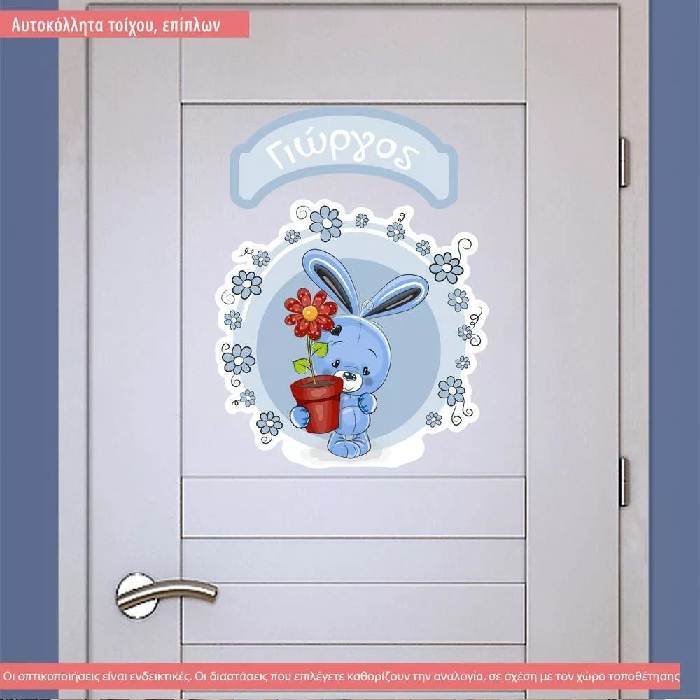 Αυτοκόλλητο τοίχου Χαριτωμένο Λαγουδάκι, πινακίδα με όνομα