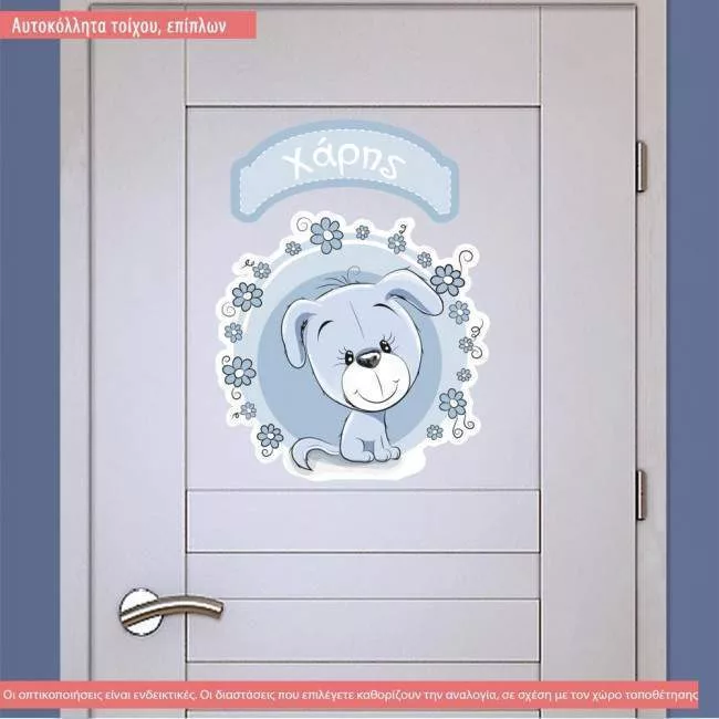 Αυτοκόλλητο τοίχου Χαριτωμένο σκυλάκι, πινακίδα με όνομα