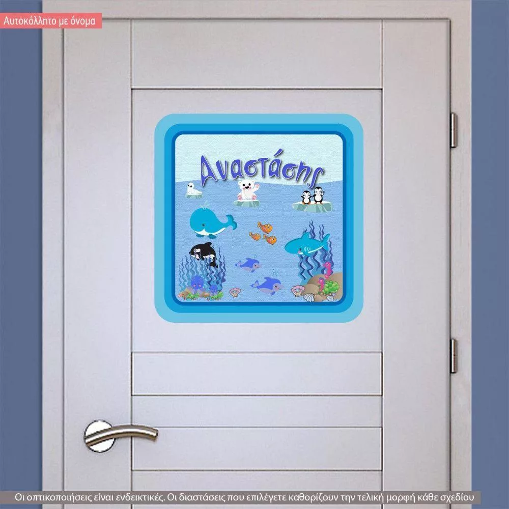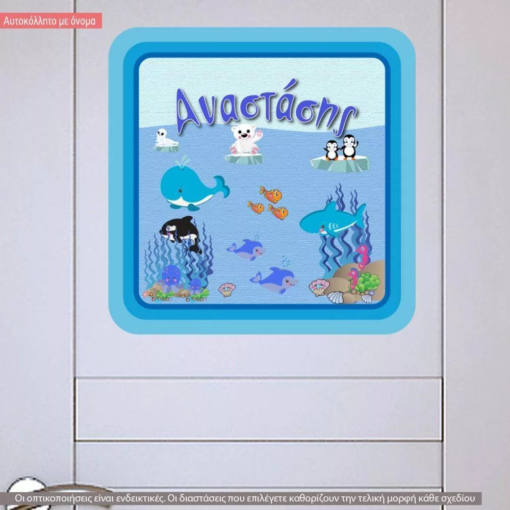 Αυτοκόλλητο τοίχου Ζωάκια της Θάλασσας, πινακίδα με όνομα και ζωάκια