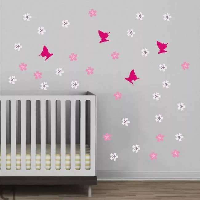 Αυτοκόλλητα τοίχου παιδικά Ανθισμένη κερασιά, λουλούδια, πεταλούδες, επιπλέον σχέδια