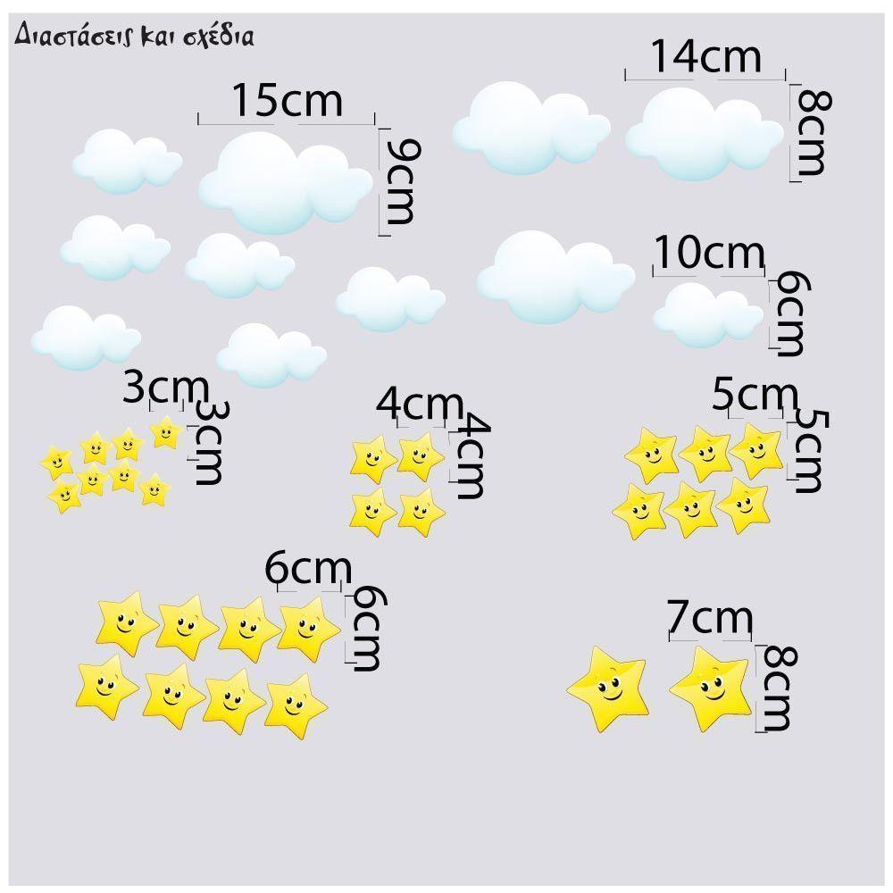 Αυτοκόλλητα τοίχου παιδικά αστέρια χαμογελαστά και συννεφάκια