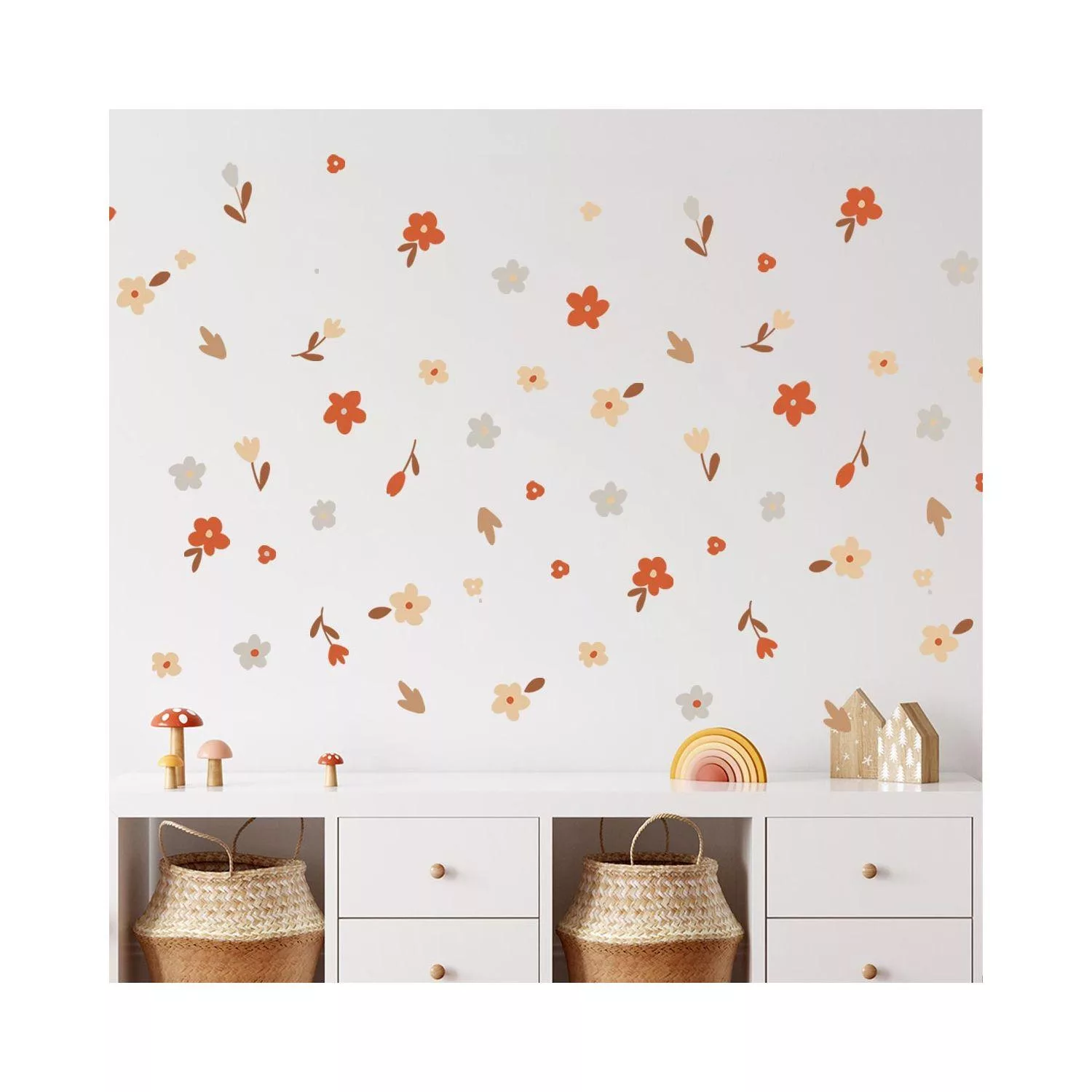 Αυτοκόλλητα λουλούδια minimal γήινα χρώματα, μοτίβο