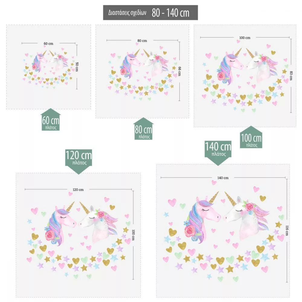 Αυτοκόλλητα τοίχου Μονόκεροι, καρδιές, αστέρια