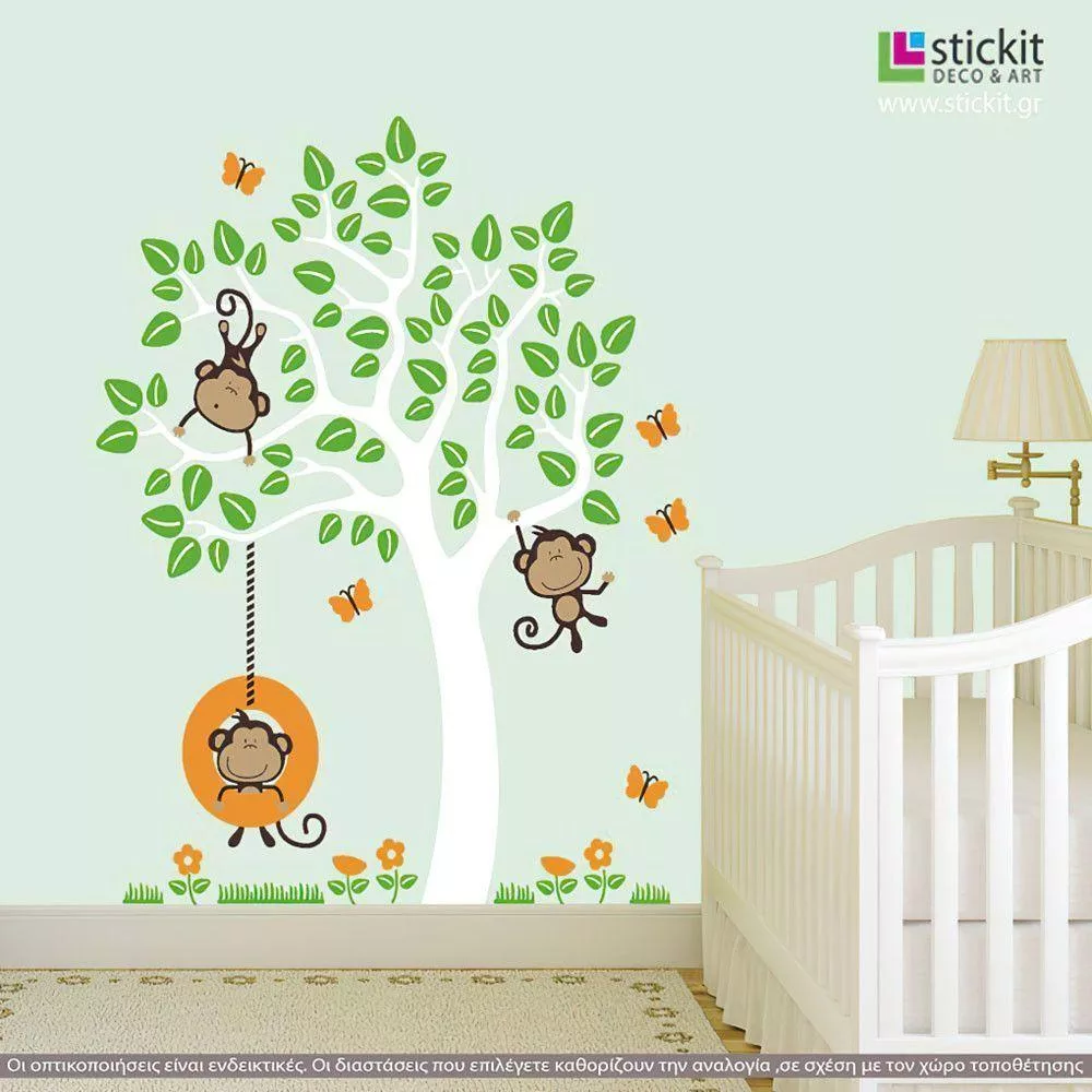 Αυτοκόλλητα τοίχου παιδικά μαϊμουδάκια σε δέντρο, Monkeys Joy, επιπλέον σχέδια