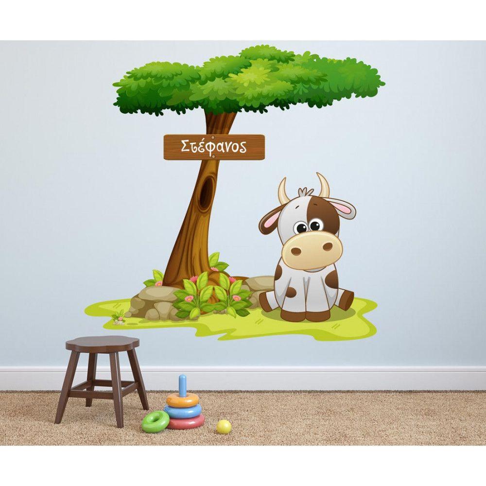 Αυτοκόλλητα τοίχου παιδικά Αγελαδίτσα στο δέντρο με όνομα