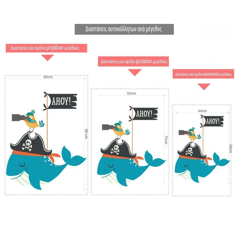 Αυτοκόλλητα τοίχου παιδικά με φάλαινα και πειρατή, Ahoy
