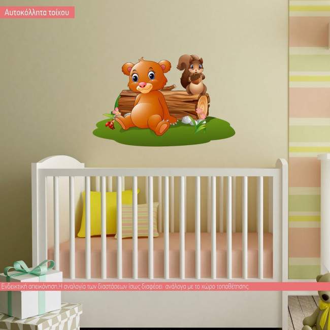 Αυτοκόλλητα τοίχου παιδικά Αρκουδάκι και σκιουράκι