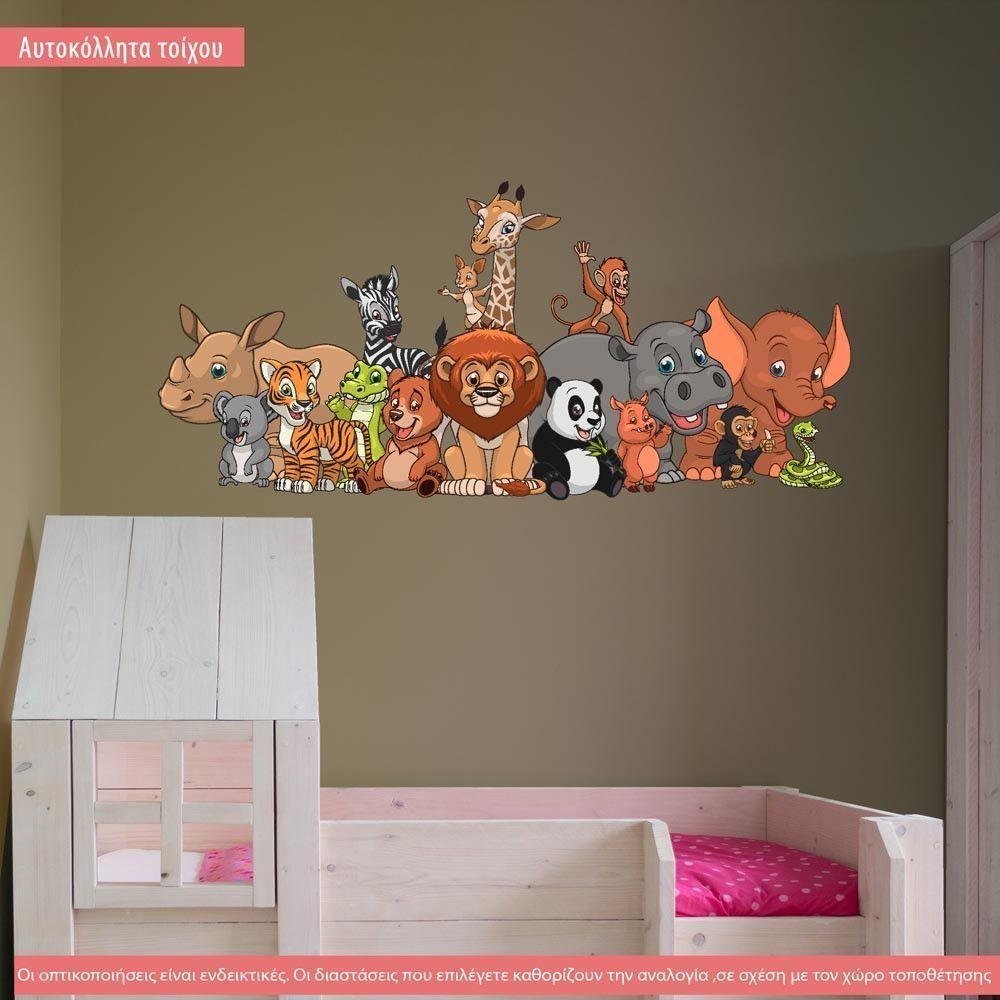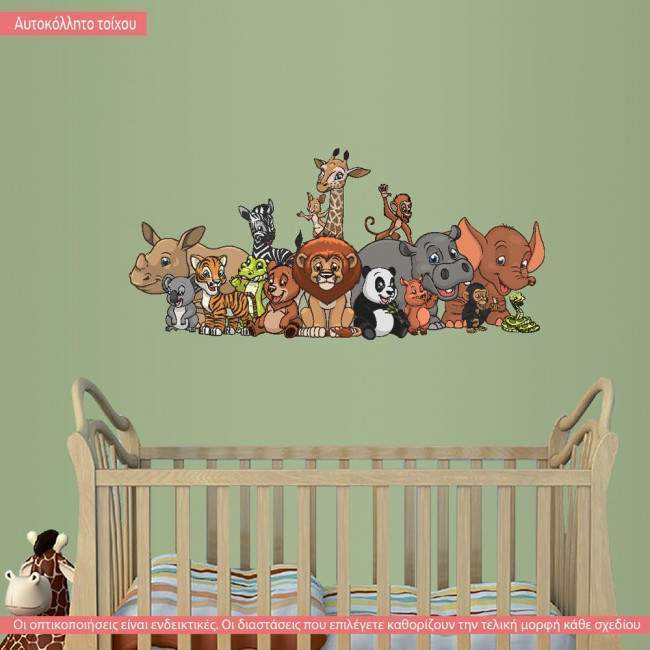 Αυτοκόλλητο τοίχου λιοντάρι ρινόκερος, ιπποπόταμος, τίγρης, κοάλα. Cute baby animals