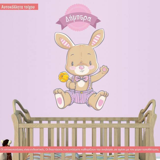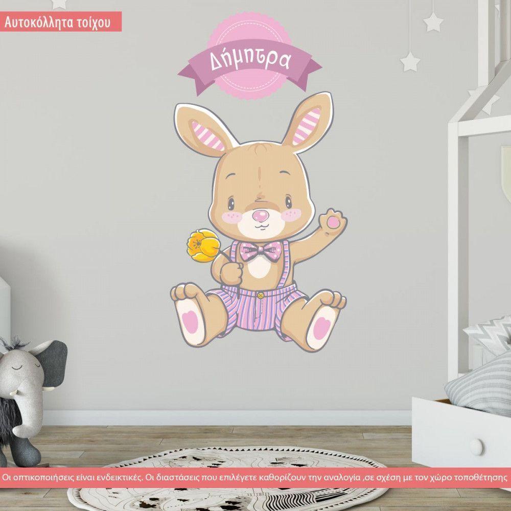 Αυτοκόλλητα τοίχου παιδικά λαγουδάκι με όνομα, Cute little bunny