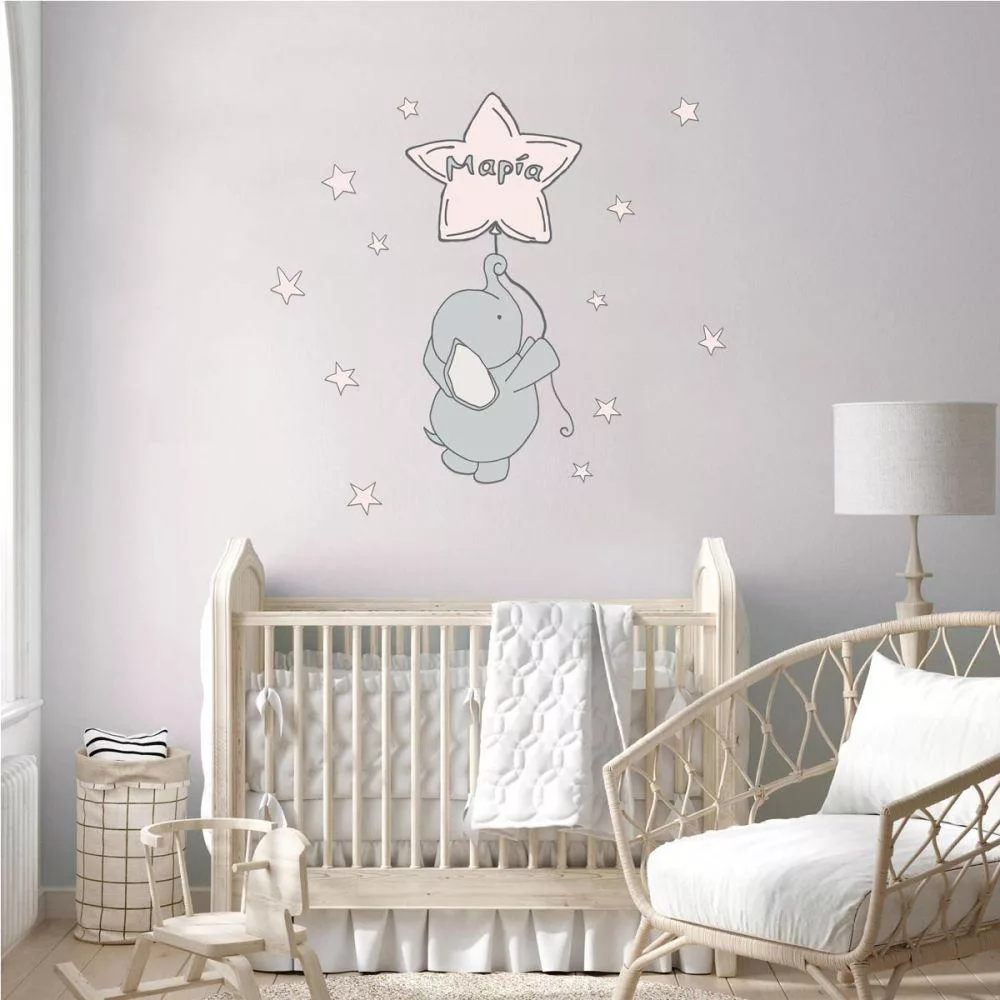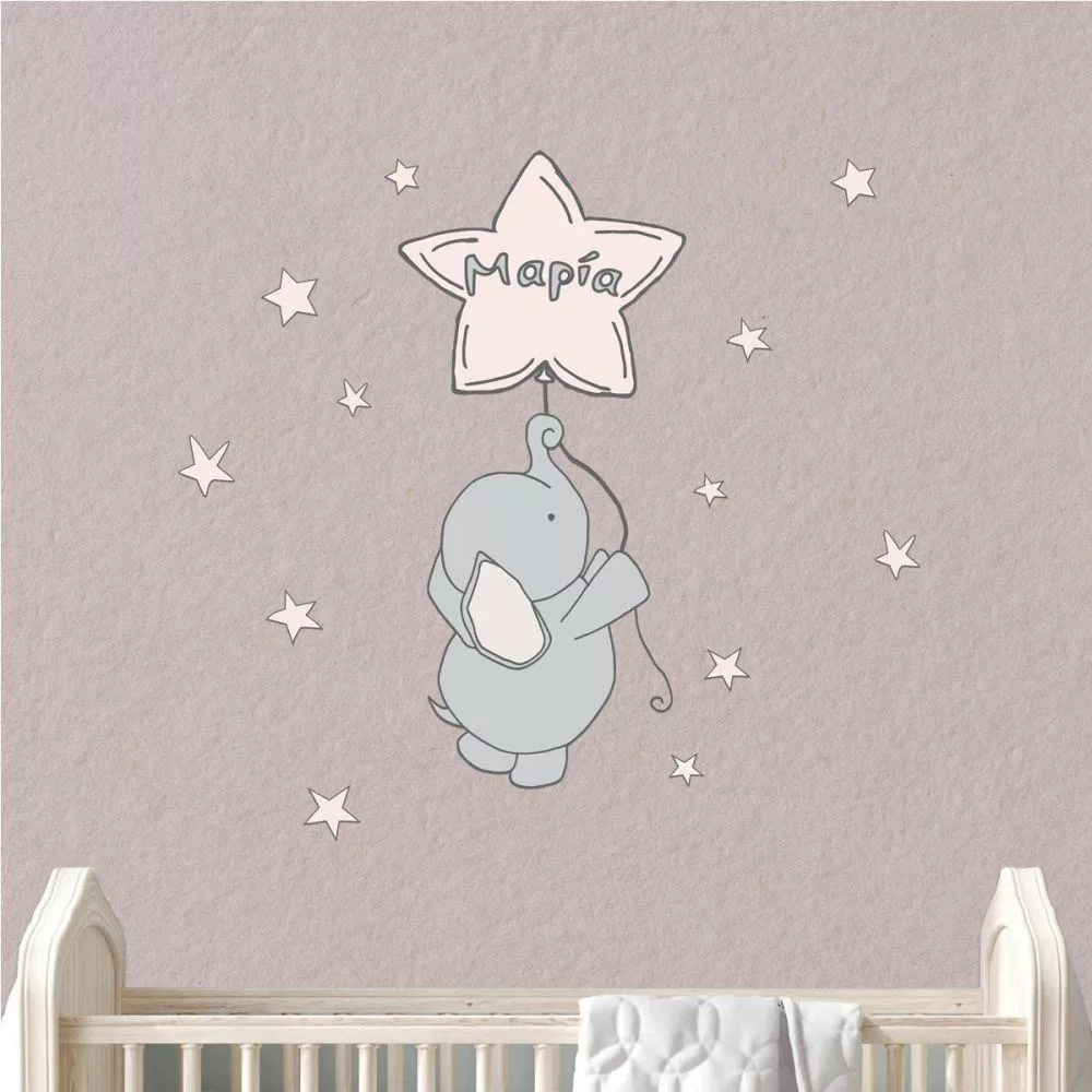 Πίνακας παιδικός σε καμβά Reach for the stars, ελεφαντάκι στα αστέρια με όνομα