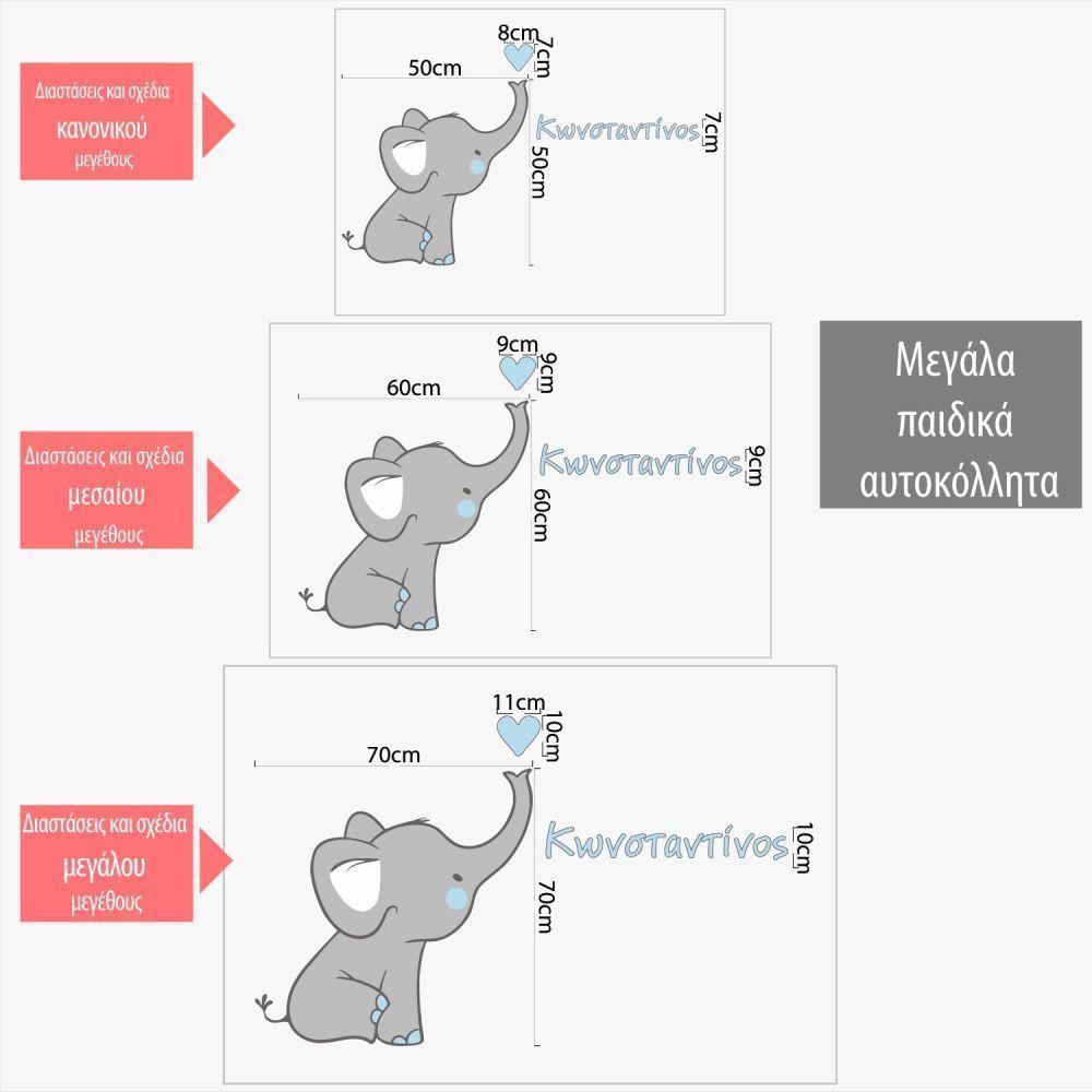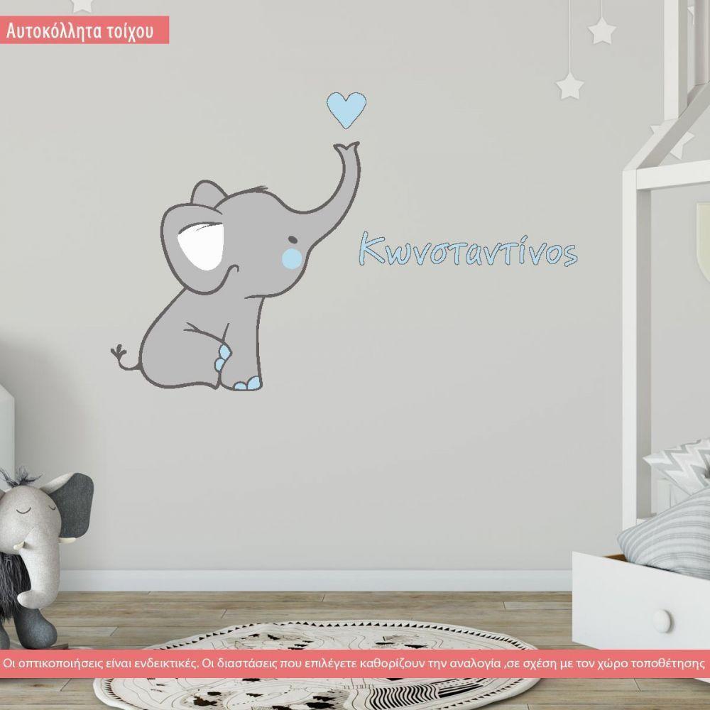 Αυτοκόλλητα τοίχου παιδικά Ελεφαντάκι και καρδιά με όνομα.