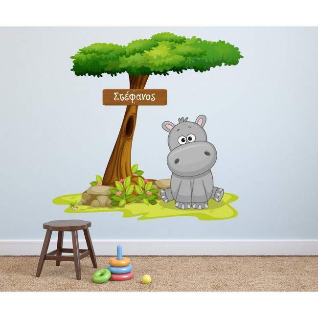 Αυτοκόλλητα τοίχου παιδικά Ιπποποταμάκι στο δέντρο με όνομα