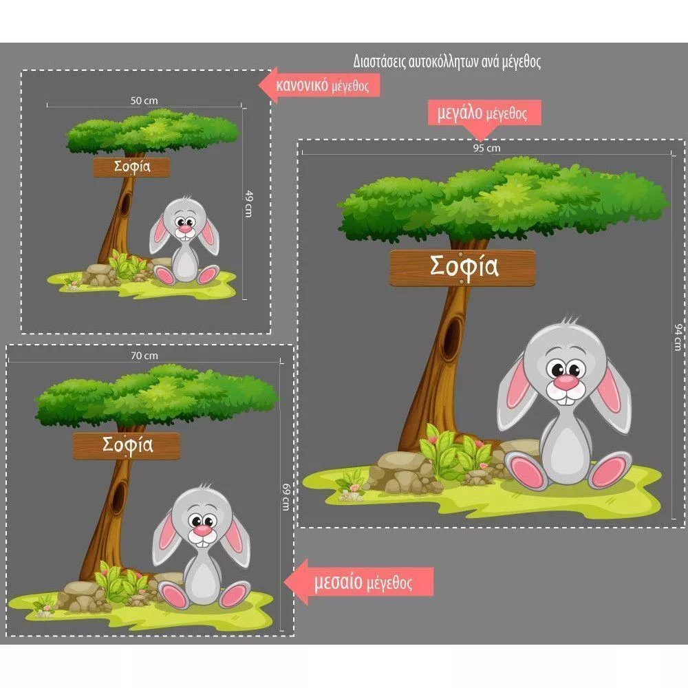 Αυτοκόλλητα τοίχου παιδικά Κουνελάκι στο δέντρο με όνομα