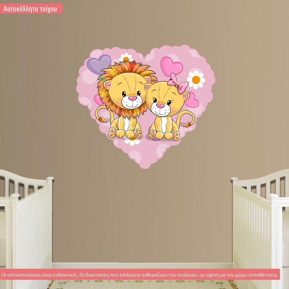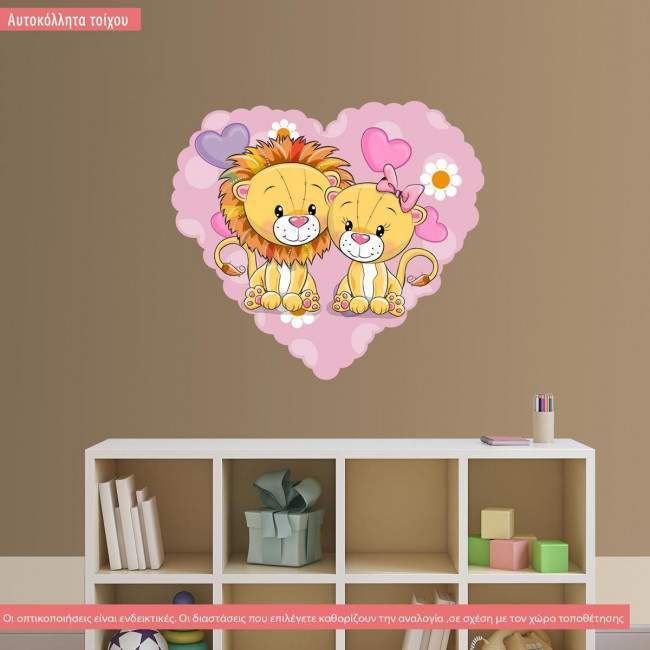 Αυτοκόλλητο τοίχου καρδιά και λιονταράκια
