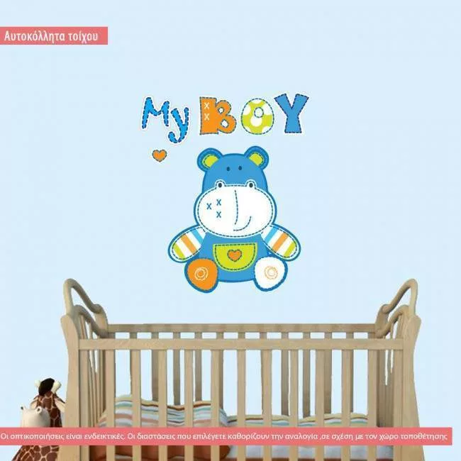 Αυτοκόλλητο τοίχου ζωάκι, ιπποποταμος, My boy