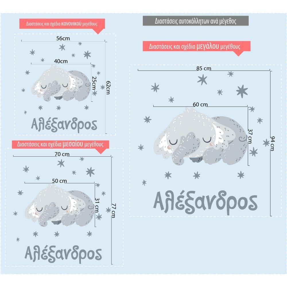 Αυτοκόλλητα τοίχου παιδικά Νυσταγμένο Ελεφαντάκι με όνομα