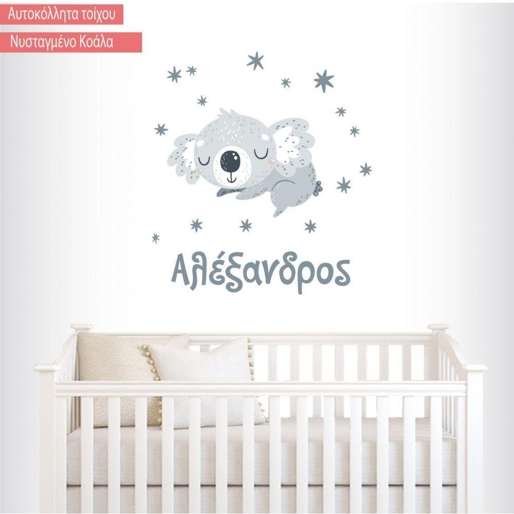 Αυτοκόλλητα τοίχου παιδικά Νυσταγμένο Κοάλα με όνομα