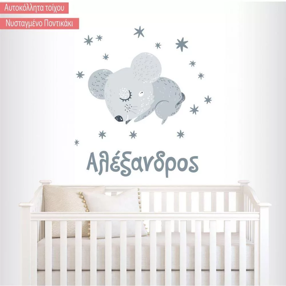 Αυτοκόλλητα τοίχου παιδικά Νυσταγμένο Ποντικάκι με όνομα