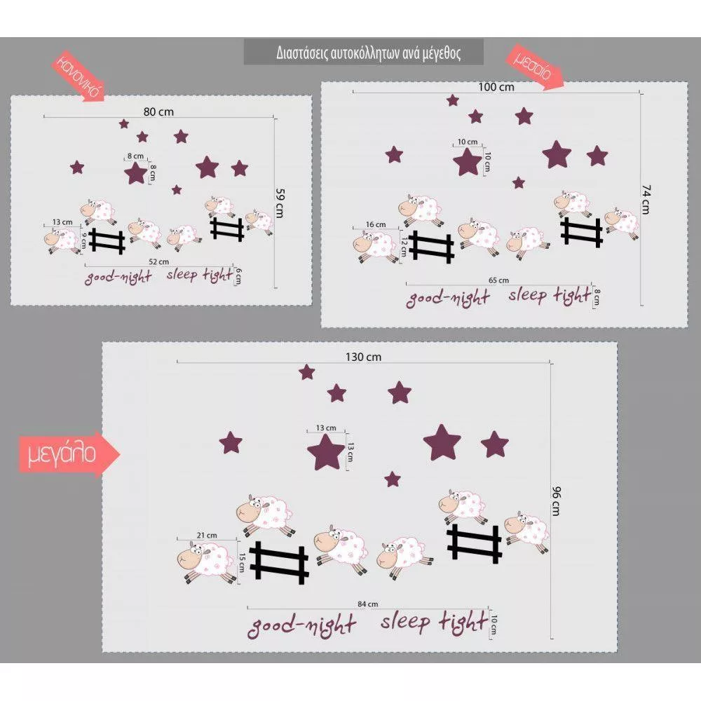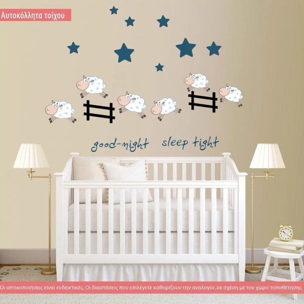 Αυτοκόλλητα τοίχου παιδικά Προβατάκια με σύννεφα good-night, sleep-tight