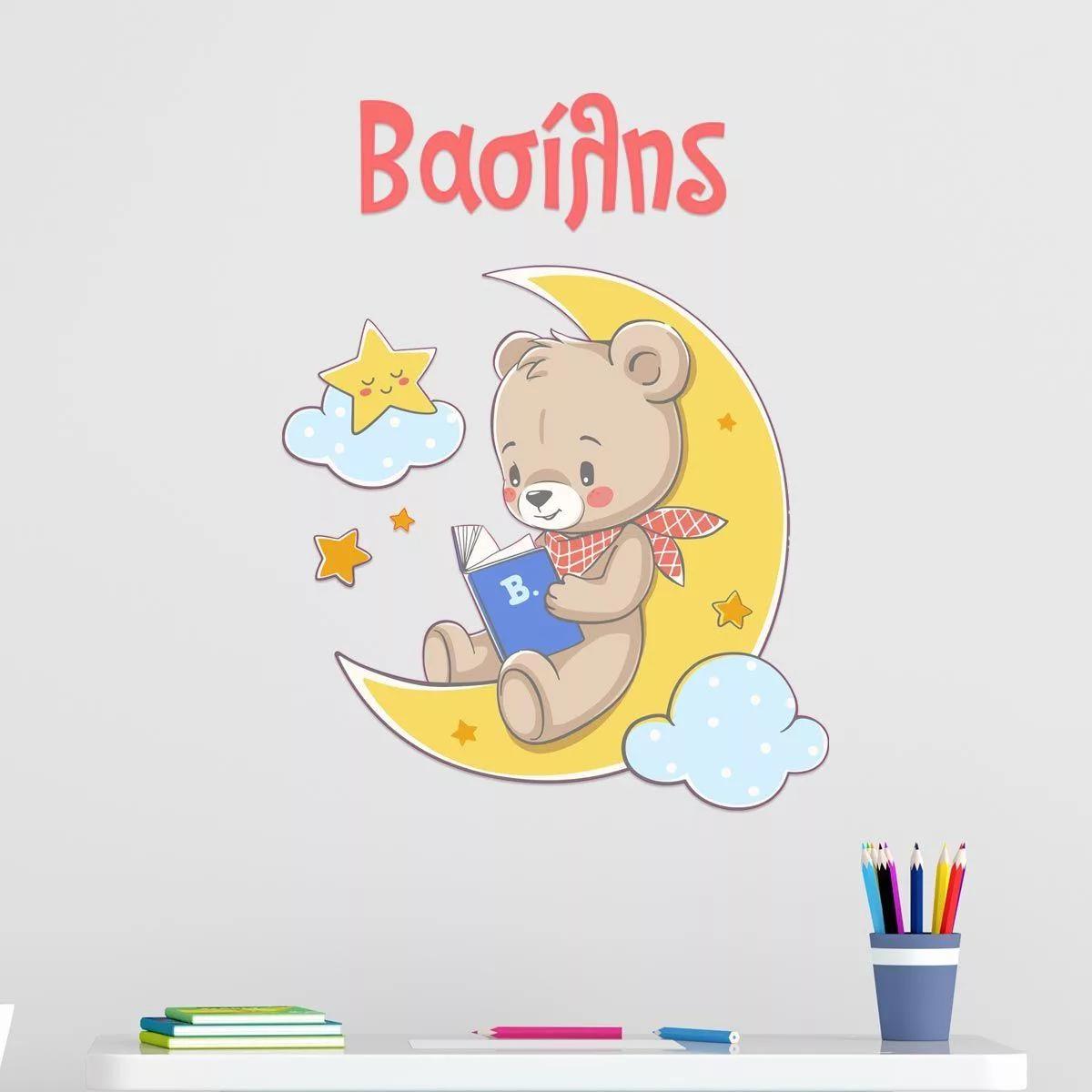 Αυτοκόλλητα τοίχου παιδικά Στο φεγγάρι αρκουδάκι με όνομα