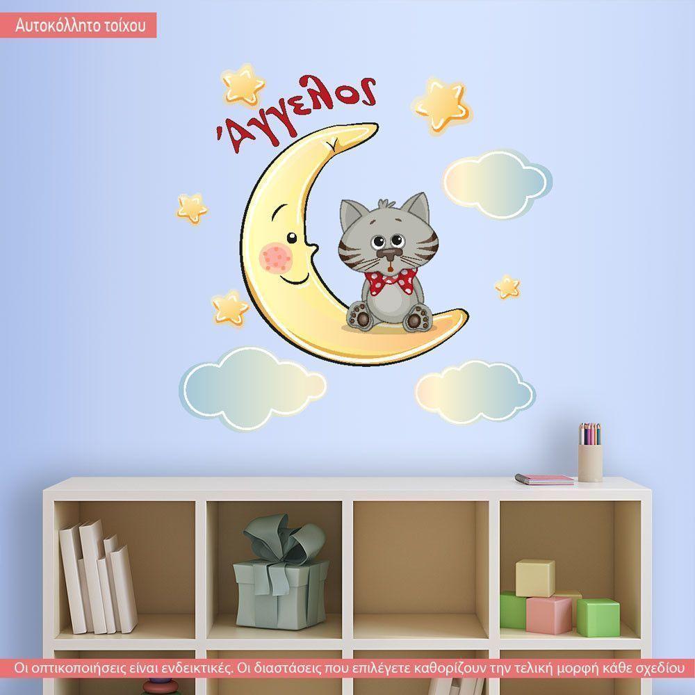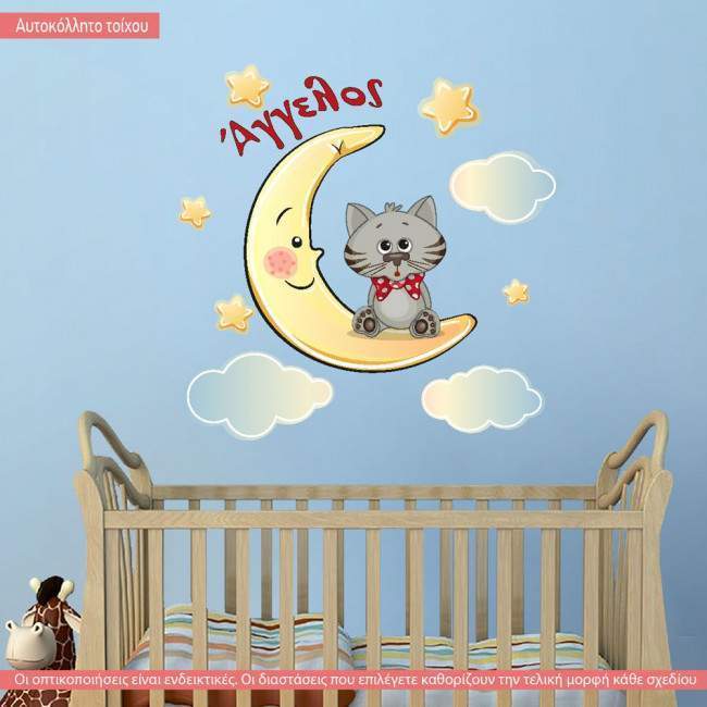 Αυτοκόλλητα τοίχου παιδικά Στο φεγγάρι γατάκι, με όνομα