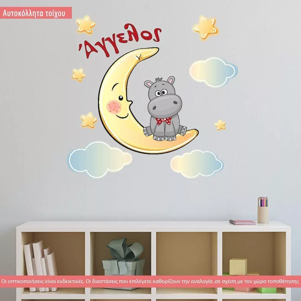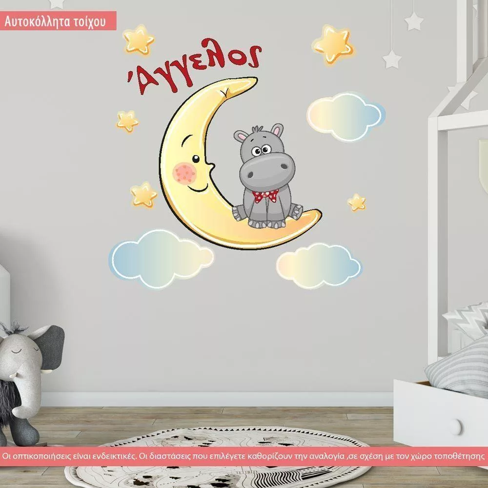 Αυτοκόλλητα τοίχου παιδικά Στο φεγγάρι ιπποποταμάκι, με όνομα