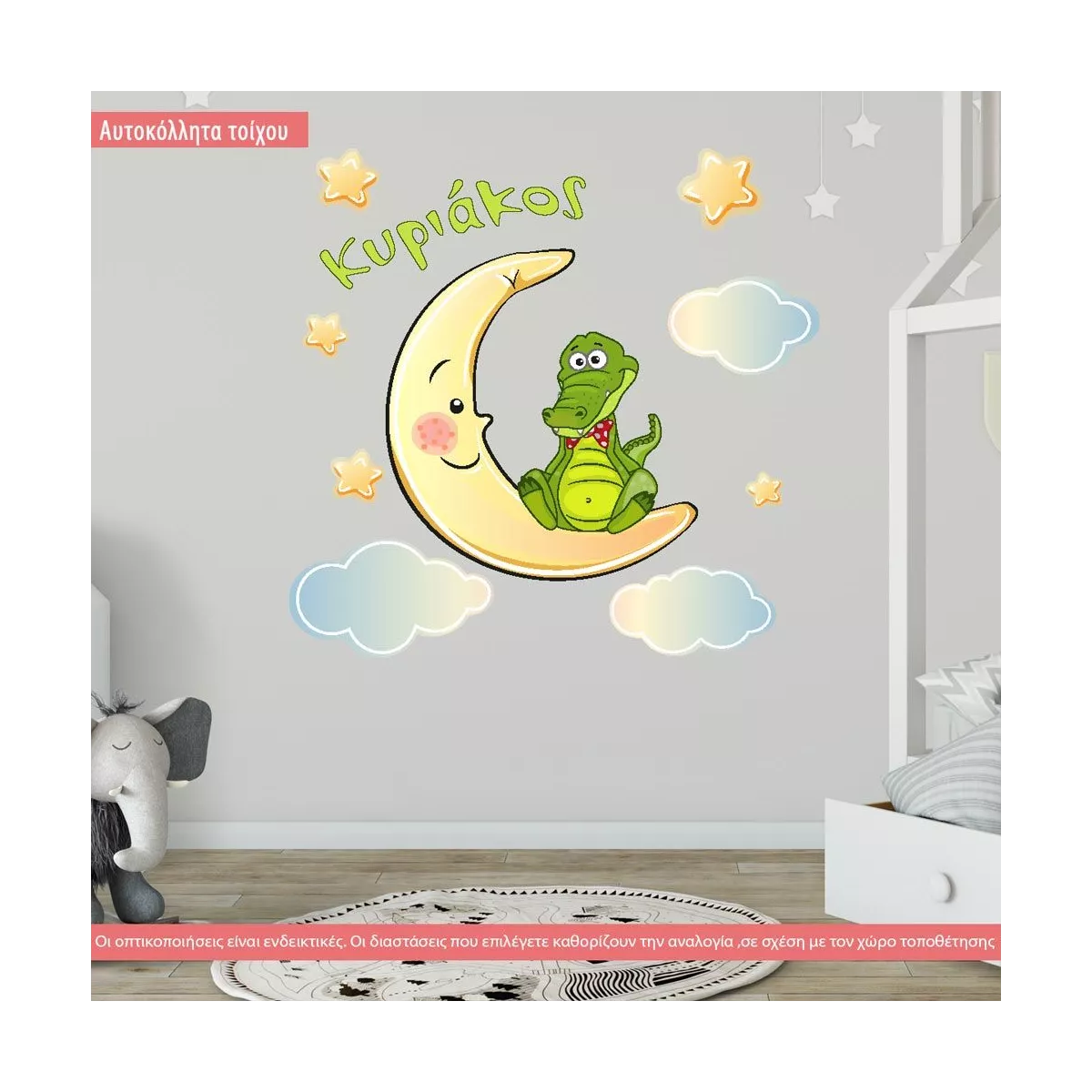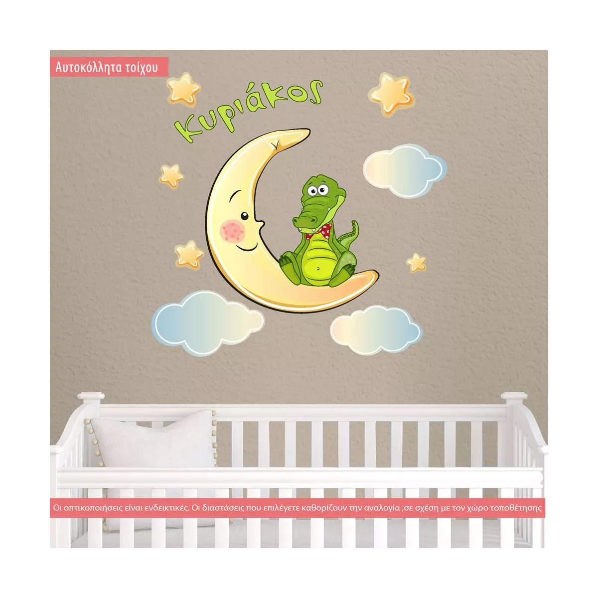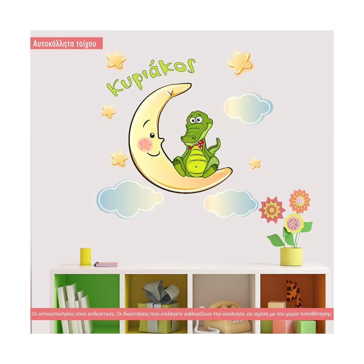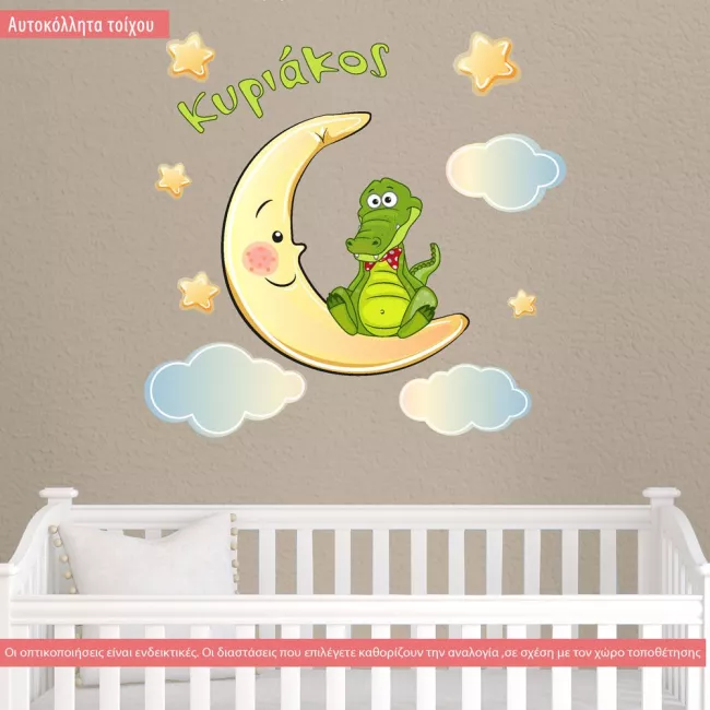 Αυτοκόλλητα τοίχου παιδικά Στο φεγγάρι κροκοδειλάκι, με όνομα